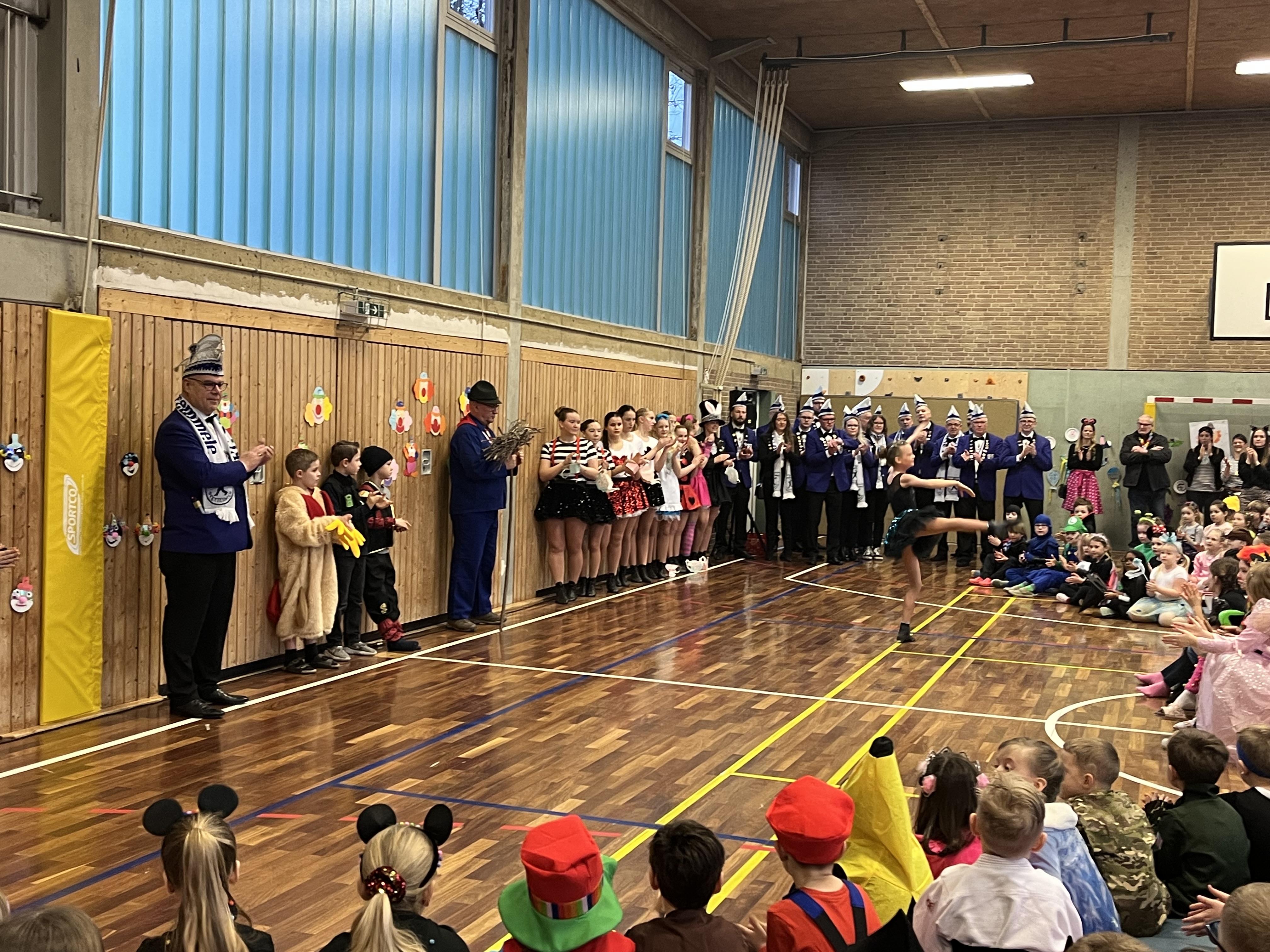 Das Team der Grundschule lud schließlich mit seinem Tanz zu Jeck Yeah alle kleinen Jecken zum Mittanzen ein, bevor in den Klassen und in der Turnhalle geknabbert und kräftig weitergefeiert wurde.