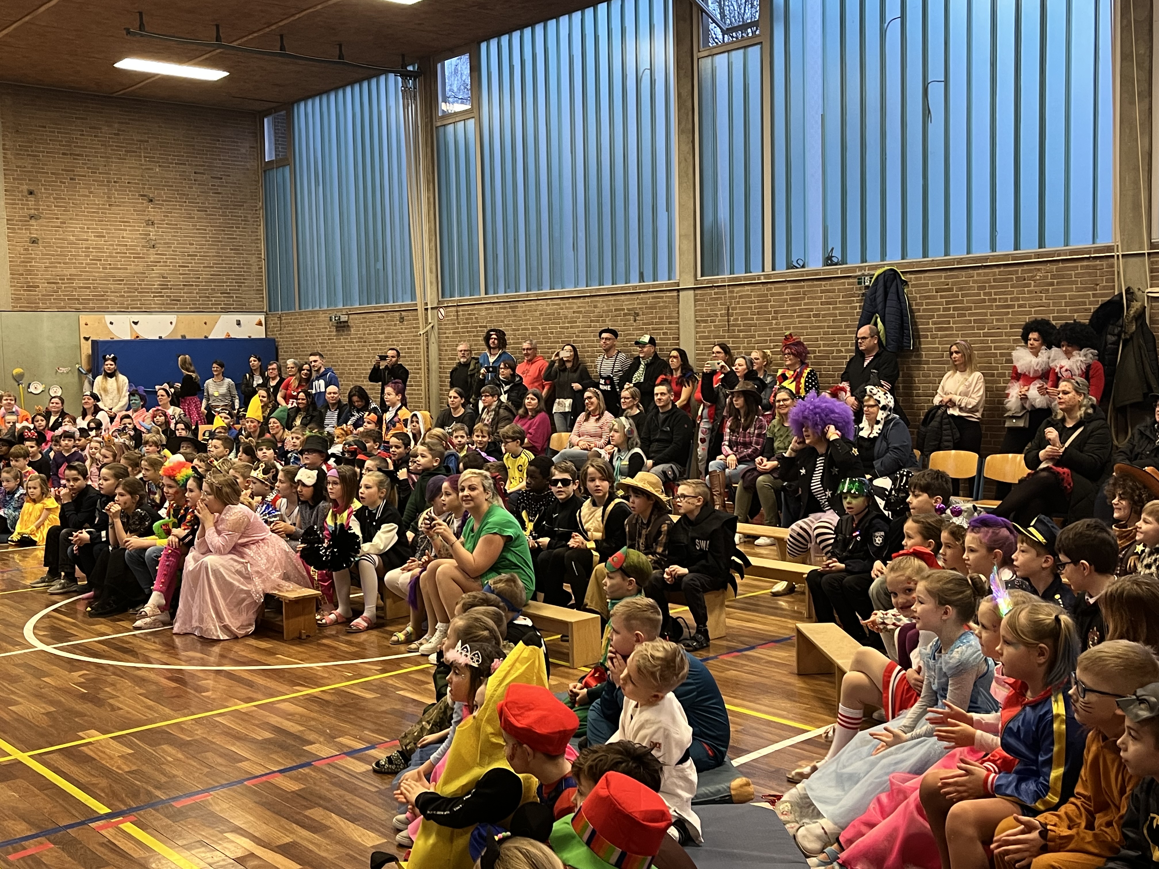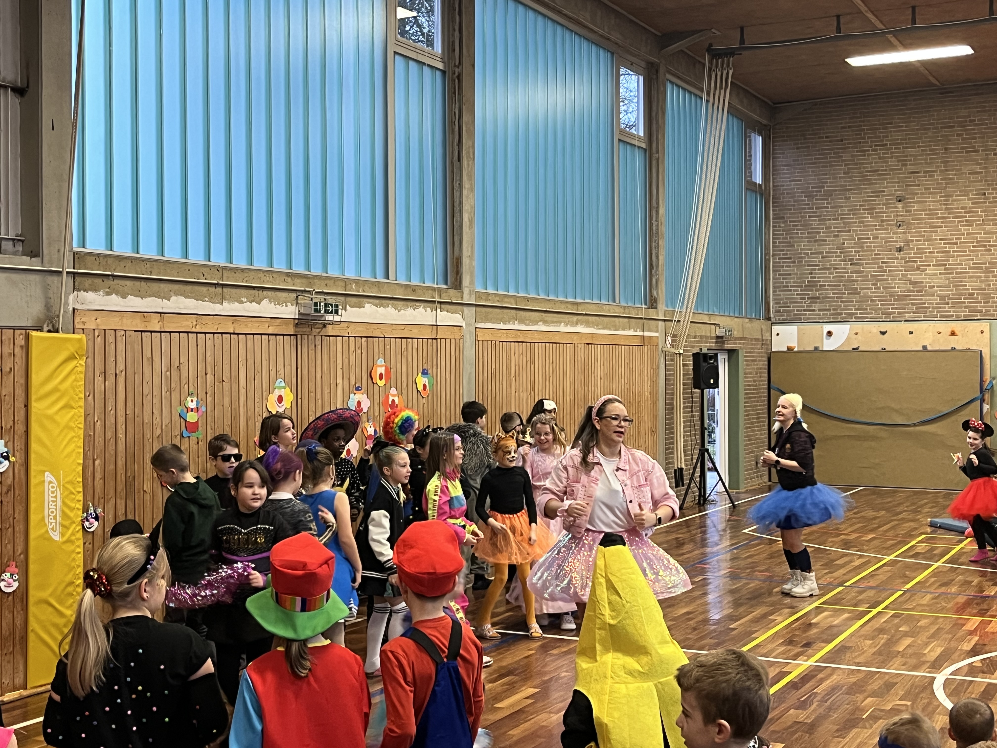 Das Team der Grundschule lud schließlich mit seinem Tanz zu Jeck Yeah alle kleinen Jecken zum Mittanzen ein, bevor in den Klassen und in der Turnhalle geknabbert und kräftig weitergefeiert wurde.